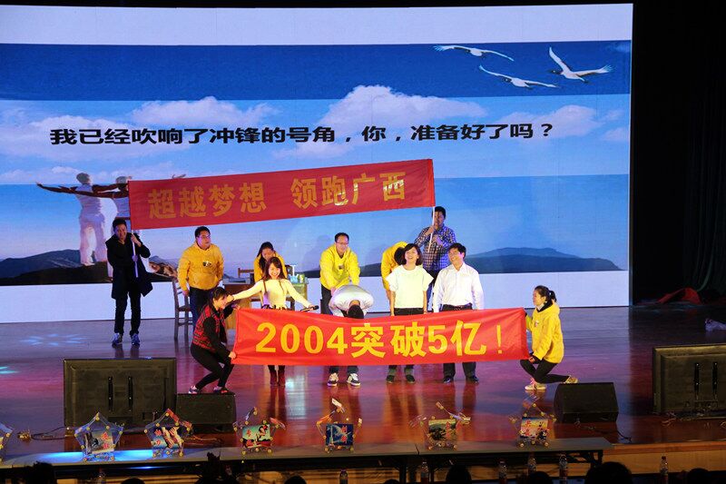 年会在富于激情感召的视频中拉开帷幕。会上公司朱朝阳董事长对2014年销售工作进行了总结,分析2015年医药市场环境、行业新政策及企业面对的挑战,部署2015年公司销售工作。2014年伴随着柳州医药的成功上市和公司现代物流基地的竣工,为公司快速发展奠定了坚实基础。但同时我们也要清楚认识到当前形式和竞争,继续发扬柳药人团结拼搏的精神,坚持合规经营、廉洁自律、创新进取,努力实现新一年的销售目标。会上朱朝阳董事长给个销售团队授旗,与会业务员高呼2015年销售誓词为实现2015年销售目标加油鼓劲。