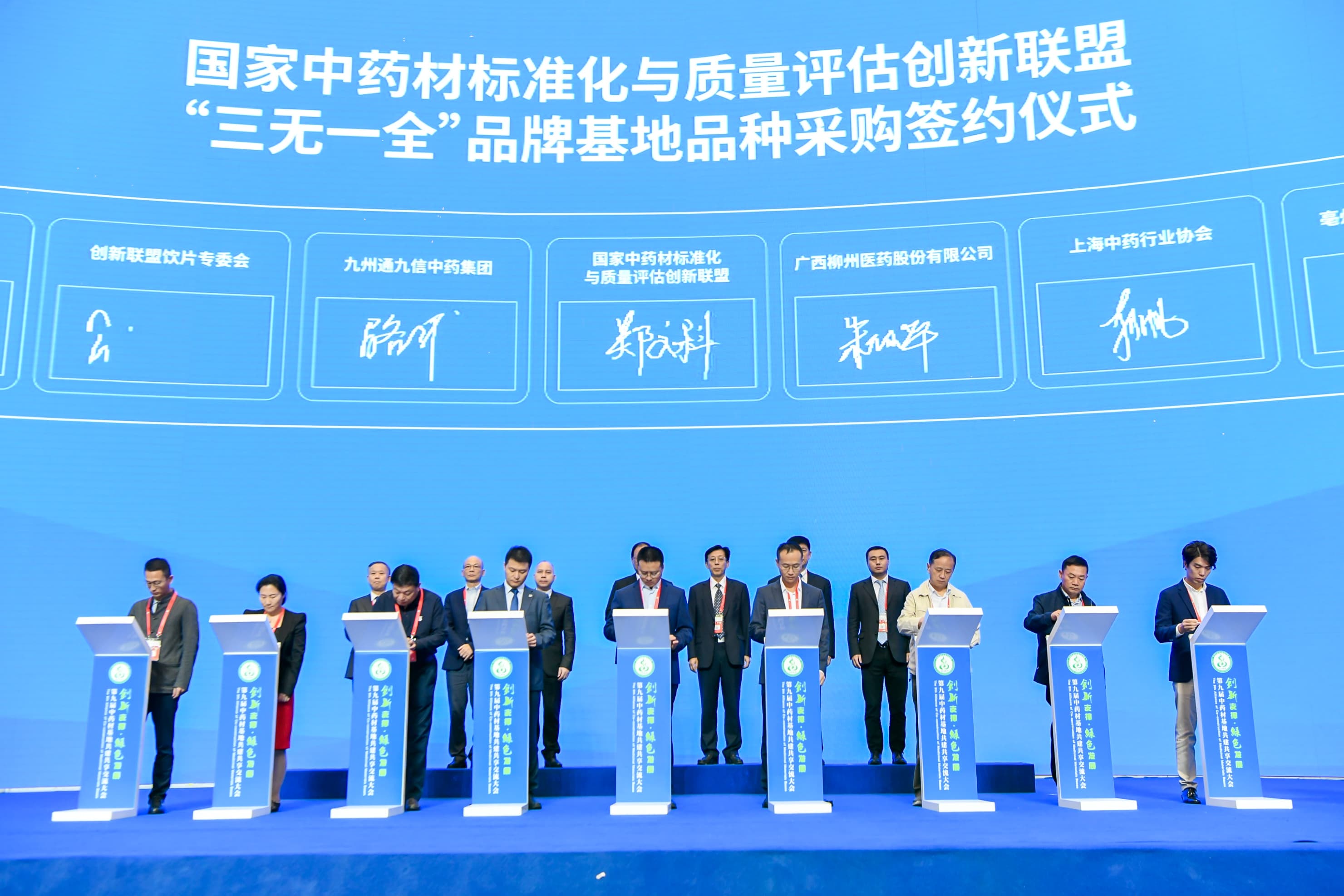 自治区副主席黄俊华出席开幕式并致辞。中国工程院院士、国家中药材标准化与质量评估创新联盟理事长张伯礼、中国工程院院士朱有勇等领导和嘉宾分别发表主旨演讲。大会还进行了《广西百名名中医百首验方》新书发布,《中药材行业蓝皮书》编写工作启动仪式,创新联盟公布 “三无一全”评审结果并发布证书。