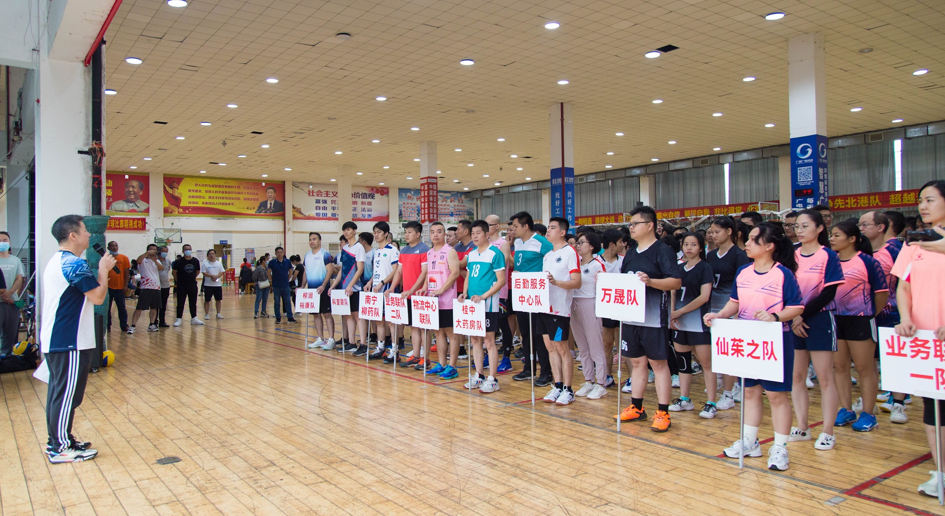 为丰富职工业余文化生活、培养团队协作精神、提高团队凝聚力,11月12日,由集团党委、工会、团委组织的柳药集团“同心向党杯”2022年职工气排球比赛在柳州市篮球训练基地拉开帷幕。本次比赛共有来自公司、各子公司组成的12支代表队约260人参加。集团副总经理唐贤荣作比赛开幕式致辞并宣布比赛开始。