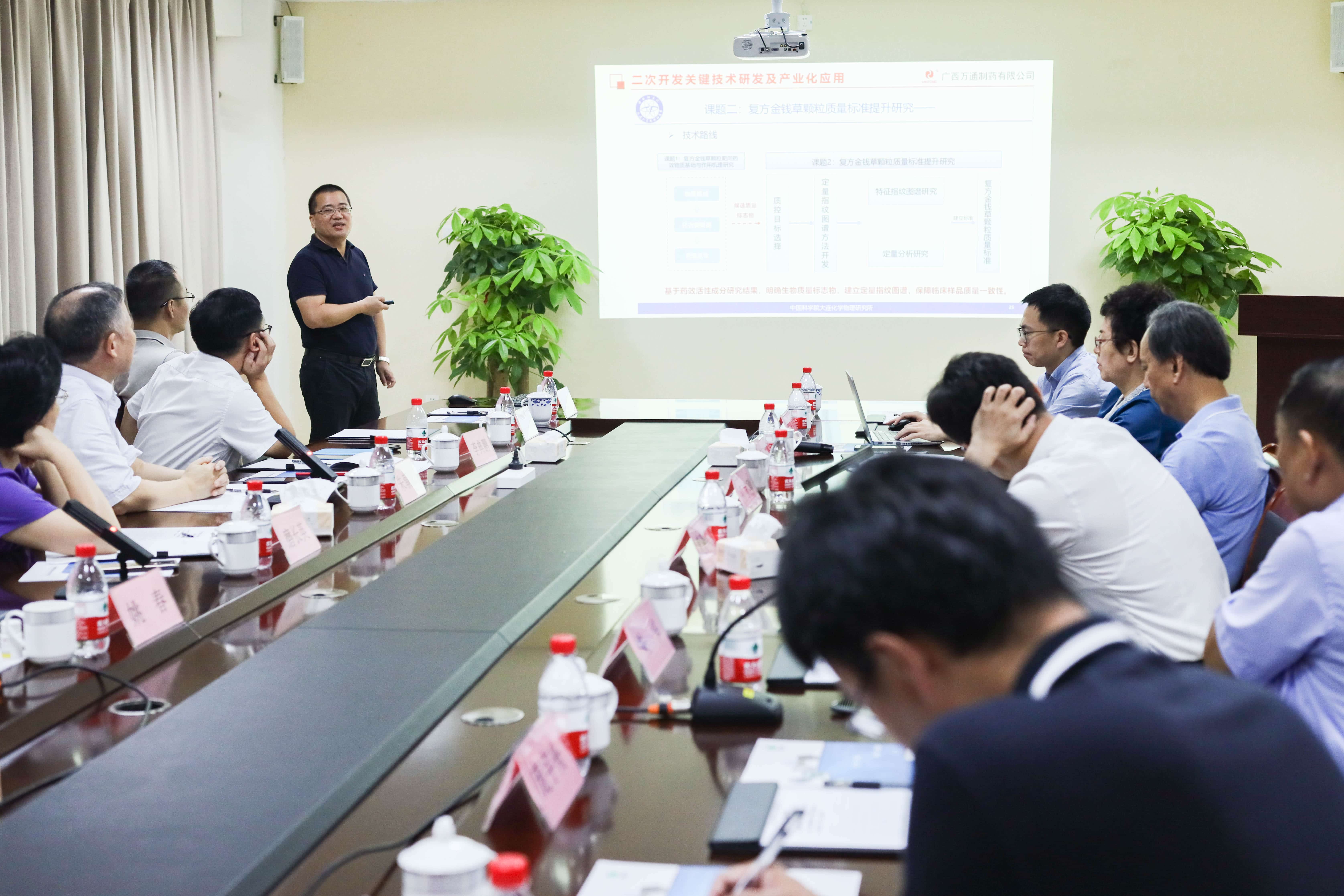 会上,与会专家学者及行业代表围绕中药产业新形势、中医药产品开发、中医药标准化、国际化发展等话题展开深入地讨论和交流,共同为广西中医药产品开发建言献策。广西中医药大学校长姚春从“桂十味”产业发展背景、资源及利用状况、研究工作进展和产业研究发展策略四部分介绍了“桂十味”道地药材产业现状及高质量发展策略。集团董事、万通制药总经理张华在会上作《柳药集团产品开发》主题分享,详细介绍公司中药饮片、中成药及院内制剂等产品和技术研发情况。